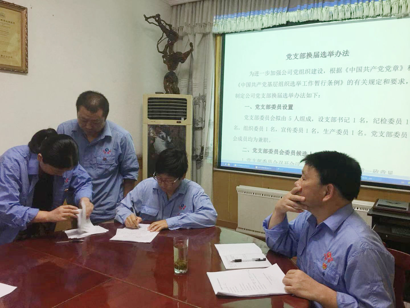 2019年8月27日下午,中共湖北省丹江口開泰激素有限責(zé)任公司支部委員會組織召開黨員大會,對第四屆黨支部進(jìn)行換屆選舉,會議由支部書記聞開學(xué)主持,公司全體黨員參加。
