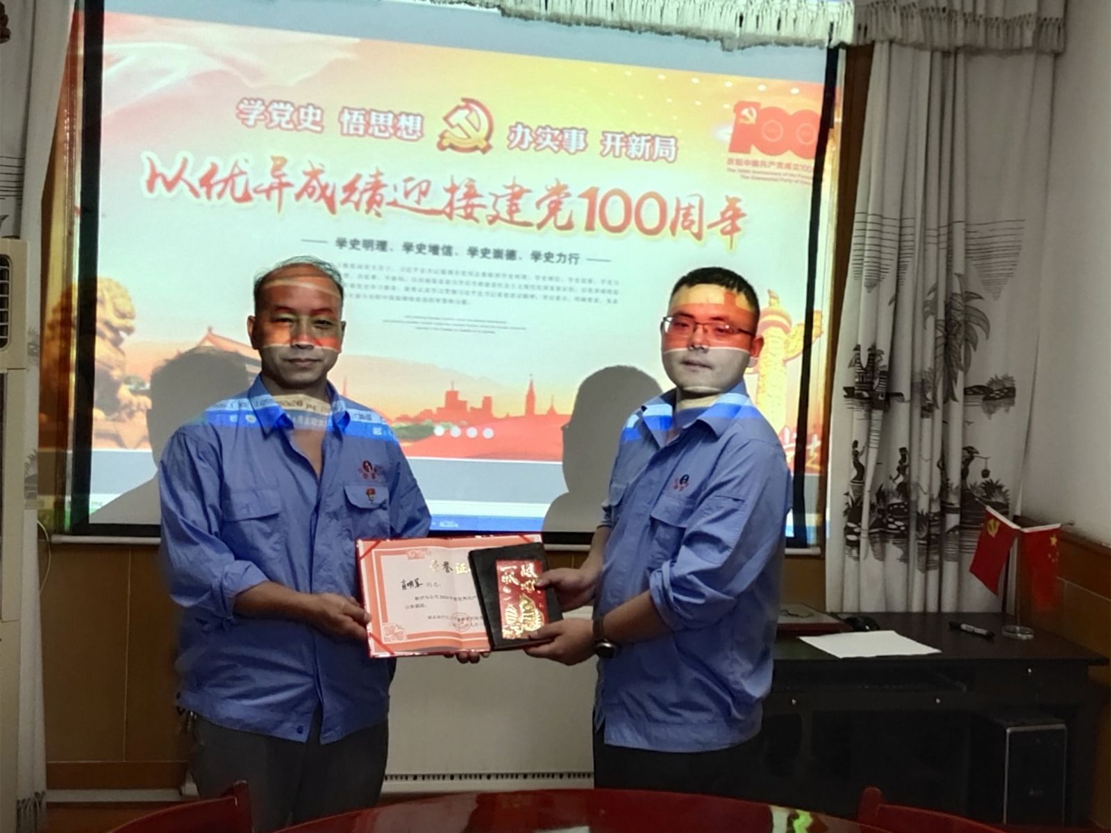 最后,全體黨員評(píng)選出2020-2021年度優(yōu)秀共產(chǎn)黨員。公司總經(jīng)理聞文為優(yōu)秀共產(chǎn)黨員頒發(fā)了榮譽(yù)證書和獎(jiǎng)金。