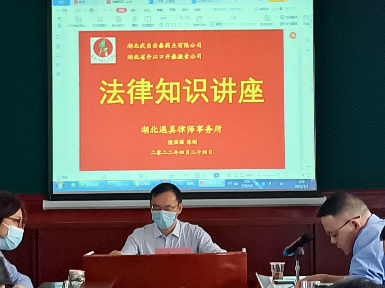 為進(jìn)一步增強(qiáng)員工法律意識,學(xué)習(xí)并熟悉與崗位工作相關(guān)的法律法規(guī)知識,4月24日上午,湖北武當(dāng)安泰藥業(yè)有限公司、湖北省丹江口開泰激素有限公司邀請湖北遇真律師事務(wù)所饒國強(qiáng)、陳剛律師為全體員工開展法律知識講座。