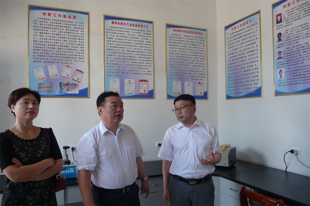 2014年8月13日,湖北省總工會副巡視員姚爭杰蒞臨公司考察了聞開學(xué)勞模創(chuàng)新工作室的創(chuàng)建、運行情況。陪同考察的有十堰市、丹江口市總工會主要領(lǐng)導(dǎo)。姚主席一行參觀了勞模創(chuàng)新工作室實驗室、產(chǎn)品分析室及中試生產(chǎn)線,創(chuàng)新工作室?guī)ь^人——湖北省五一勞動獎?wù)芦@得者聞開學(xué)向姚主席一行介紹了創(chuàng)新工作室運行機制、在研項目的技術(shù)背景、市場前景及近年來工作室取得的創(chuàng)新成果。