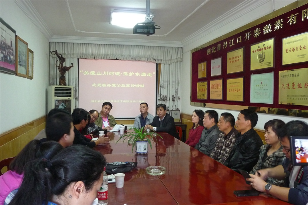 2014年10月21日,由水利部主辦,全國(guó)30多家媒體全程參與采訪的“關(guān)愛山川河流·保護(hù)水源地”志愿服務(wù)暨宣傳活動(dòng)來到公司。志愿者在公司醒目位置張貼珍惜水資源,保護(hù)水環(huán)境,保持水生態(tài)等方面的宣傳畫,向員工宣傳節(jié)水、愛水,發(fā)放宣傳冊(cè)、宣傳禮包。隨行的30多家媒體記者與公司員工座談,并就源頭治理和企業(yè)保護(hù)水源的責(zé)任擔(dān)當(dāng)?shù)确矫娴膯栴}采訪了公司主要負(fù)責(zé)人。